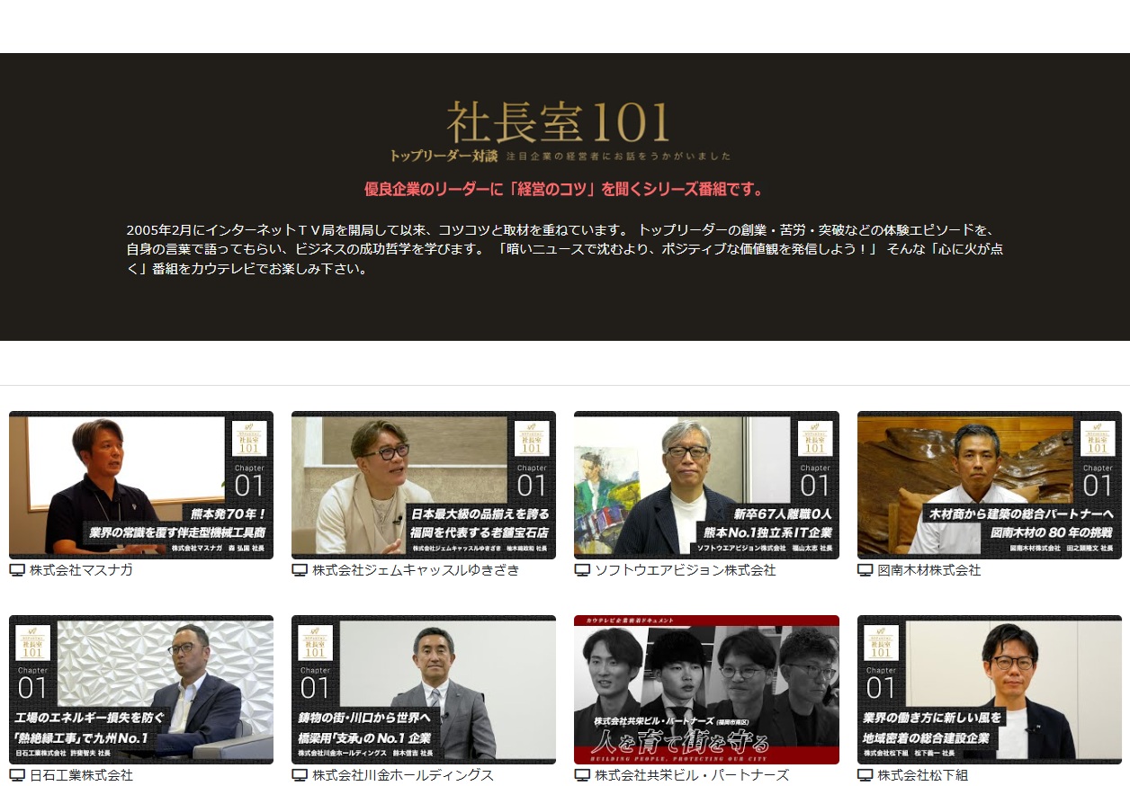 このたび 株式会社カウテレビジョン様のインタビュー企画 「社長室101」 へ